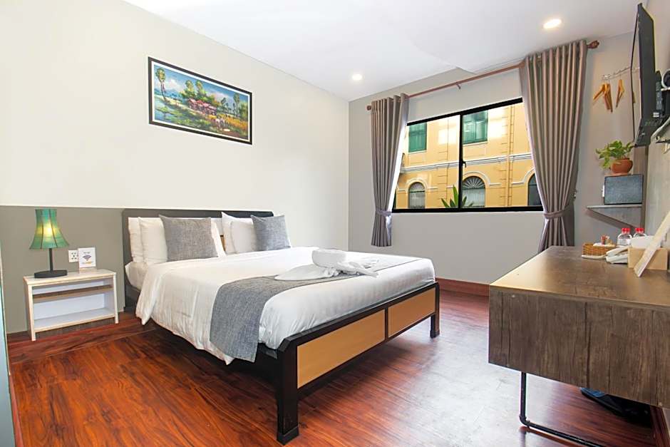 Designed in a very basic style with one big bed in the middle of the room. Features air conditioning, TV, wardrobe, refrigerator and a window.